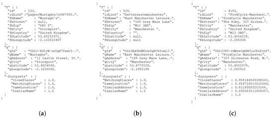 Finally, the closest work to this paper is []: this work could be considered the natural evolution of it. Specifically, a complex fuzzy relation is defined to perform public-place conflation in an on-line way. A comparison with a famous classification technique (i.e., “Random-Forest” classifiers) was performed, showing that the fuzzy approach is effective in a comparable way. Here, the definition of the fuzzy relation is improved to cope with not-cleaned names and addresses, as well as it is applied within the context of the J-CO Framework for the off-line integration of JSON data sets.