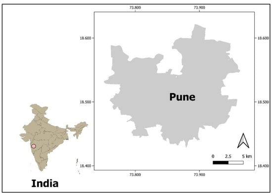 Pune is the seventh most populous city in India and the second largest in the state of Maharashtra, with an estimated population of 7.4 million (as of 2020) [30] (Figure 1). The current area of Pune city is 243.84 sq. km, compared to a mere 125 sq. km. in 1951.
