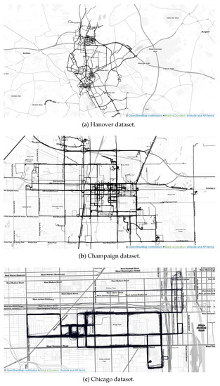- Zourlidou, S.; Golze, J.; Sester, M. [Dataset] GPS Trajectory Dataset of the Region of Hannover, Germany; Institut für Kartographie und Geoinformatik: Hannover, Germany, 2022. [Google Scholar] [CrossRef]