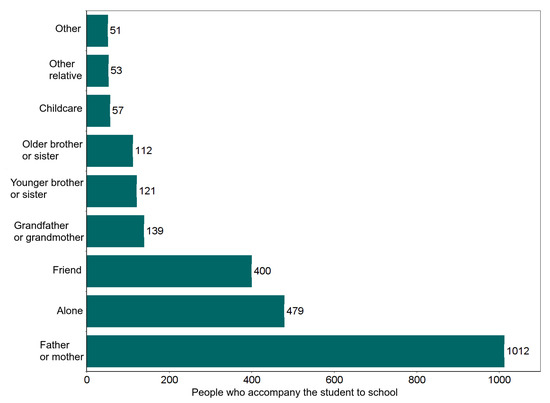 36], indicate that the age of the students marks the way they travel to school. In our study, we found that in early ages it was the parents, followed by the grandparents, who usually accompanied children to school, while in advanced courses they usually went alone or with friends, establishing 2hd Secondary Education as the educational level that marks a turning point between both habits. The objective of multiple municipal programs is to promote the autonomy of students on these routes since in addition to promoting child autonomy, it is possible to reduce pollution and the risks caused by the vehicles that come every morning to take children to school [