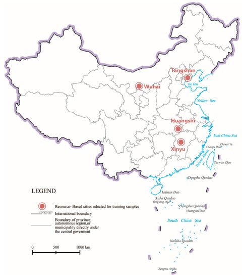 Locations of the four resource-based cities investigated here to study the large-scale automatic detection framework of IVL.