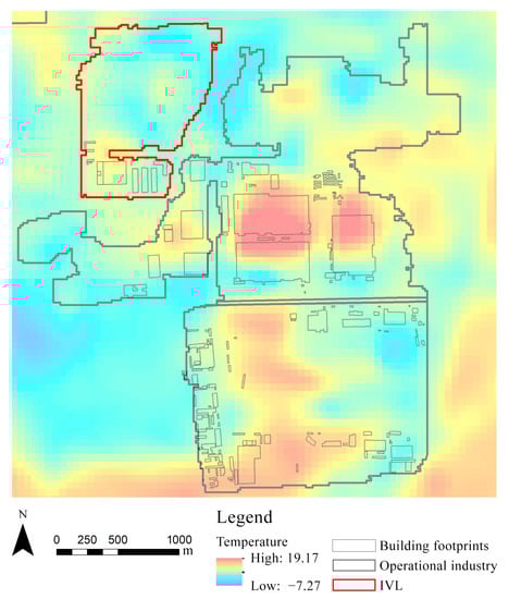 Difference in land surface temperature between land with operational industries and IVL.