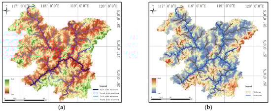River network classification and case study of main stream and tributary. (a) Hierarchical display and (b) Main stream and tributary display.