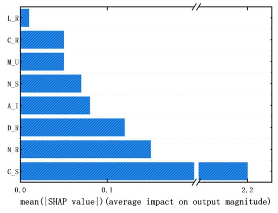 The larger the absolute value of SHAP, the greater the influence of the feature on the predicted value of the model, and its positivity or negativity value represents the direction of influence. The importance of each feature was measured according to the average absolute value of the SHAP value, calculated as follows: