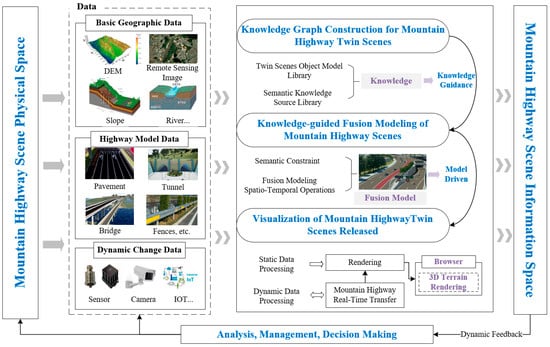 A general framework of the knowledge-guided digital twin scene fusion representation method for mountain highways.