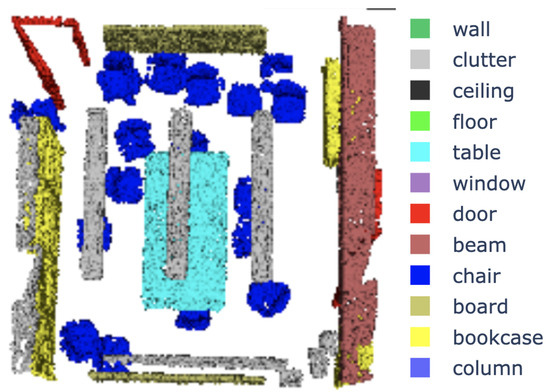 30] reported that PointNet++ achieved an overall accuracy of 90% + in segmenting structural objects (walls, ceilings, floors), although they only achieved accuracy of 70% in furniture objects when tested in S3DIS data. This level of imperfection in point-level semantic labels is likely to result in degraded room classification performance when used as input to our room classifier; the question then becomes whether our method is robust enough on point cloud data with poor quality semantic labels.