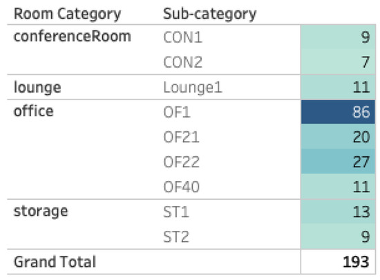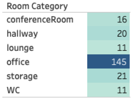 Figure 9. The room types are highly imbalanced and are dominated by offices.