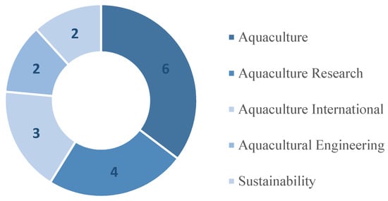 The present paper reviews a total of 31 papers that investigate the application of GIS-based MCE method for selecting aquaculture sites. The analyzed papers were published in 19 different journals (as presented in Table 3). Out of these, 14 journals have published only a single paper using this method. Only journals that have published two or more peer-reviewed papers on the use of GIS techniques for identifying suitable aquaculture areas are represented in Figure 3.