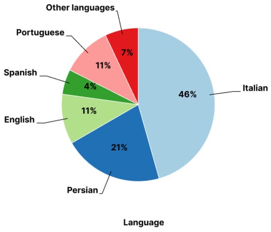 Educational attainment was another factor examined, revealing that over 58% of respondents held a master’s degree or higher. Fields of study were also considered, with 50 respondents providing related information. Native language and English proficiency also played key roles. As anticipated, due to the survey distribution channels, the largest group of respondents were Italian speakers. Figure 4 depicts the distribution of other native languages among the respondents, with Persian speakers constituting the second-largest group due to the first author’s ethnicity. Regarding English proficiency, most respondents were anticipated to have an advanced level, while none reported having basic proficiency. The survey aimed to collect specialised geospatial data visualisation and analysis terminology to create a structured archive accessible to users. The compiled terms were integrated into the application’s code to enhance the user experience by offering diverse inputs and improving response accuracy.