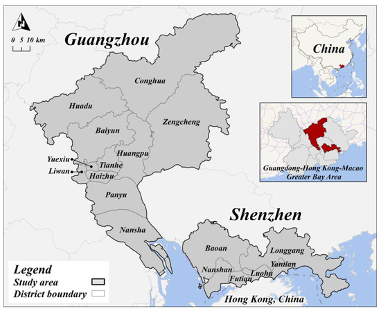 This study chose Guangzhou and Shenzhen as study areas (Figure 1), which are the center cities in the Guangdong–Hong Kong–Macao Greater Bay Area [28]. Guangzhou is the capital city of Guangdong Province in China and an important economic, transportation, and cultural center of the country. Guangzhou is in the southern part of the Pearl River Delta, with a total area of 7434.4 square kilometers and a population of about 18.734 million. Located in the southern part of Guangdong Province, bordering Hong Kong, Shenzhen is a modern international city in China. The total area of Shenzhen is about 1996.85 square kilometers, and the population is about 17.662 million. Shenzhen is one of the forefront cities of China’s reform and opening and an important center of global technological innovation and electronics industry. Previous studies reported that the average annual number of OHCA cases in Guangzhou and Shenzhen were around 874 and 658, respectively [29,30]. In general, it is necessary to pay attention to the status of AED facilities in such megacities with massive population.