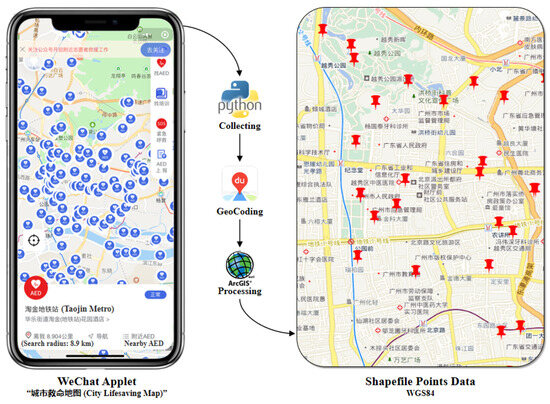 WeChat is the largest instant messaging social media APP in China, and the WeChat applet is a lightweight software that is implanted into the WeChat for quick access. A WeChat applet called Urban Lifesaving Map, which is regularly updated and released by the authorities, summarizes data on AED facilities in major cities across the country and provides users with convenience in the form of navigational maps. This is the first open-source access to a nationwide AED facility data source and usage port to date, providing a promising data source for related research by simultaneously obtaining AED data from multiple cities with the same data quality and standards.