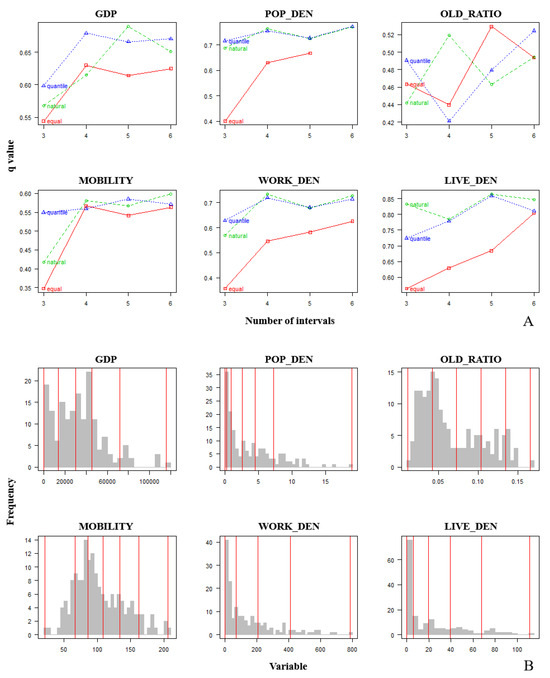 Optimal discretization of determinants in Guangzhou: discretization methods (A) and number of intervals (B).
