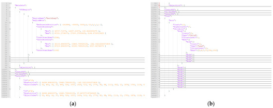 The structure of the VESI file in Json format (show in Notepad++). (a) The list of visible sets in VESI. (b) The tree structure of VESI.