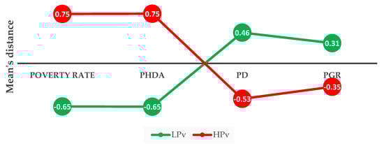 Mean of all members’ values (after being standardized) of each variable for each cluster (LPv and HPv).