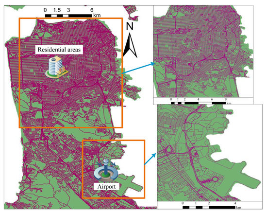 This study used the dataset provided by Piorkowski et al. [30], containing trajectories of 536 cabs in the city of San Francisco, USA, over 30 days, with an average sampling rate of 100 s/point. The GPS trajectory data recorded the location (latitude and longitude) of each cab, as well as the corresponding time and occupancy. Only the trajectories between the San Francisco City Airport and central residential place were extracted.