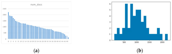 Topic modeling is frequently used to discover latent semantic structures, referred to as topics, in a large collection of documents by clustering similar documents into a group. Latent Dirichlet allocation (LDA) and probabilistic latent semantic analysis are widely used topic-modeling techniques. Because these methods rely on the bag-of-words (BoW) representation of documents, which ignores the ordering and semantics of words, distributed representations of words and documents have recently gained popularity in topic modeling [11,12,13,14]. In particular, [11,12] proved that sentence embeddings in topic modeling produce more meaningful and coherent topics than topic models based on BoW or distributed word representations.