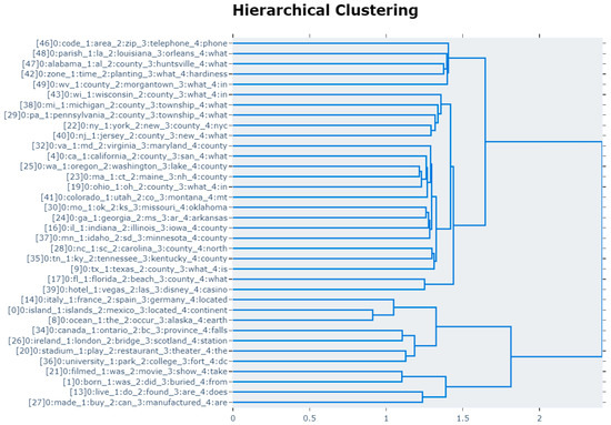 Several studies have analyzed GeoQA datasets. Hamzei et al. [10] analyzed MS MARCO in terms of its syntactic structure. Words or spans were encoded as semantic encodings such as place names, place types, activities, situations, qualitative spatial relationships, WH words, and other generic objects. They calculated the Jaro similarity [19] and applied the k-means clustering algorithm [20] to the encoded sentences. They also analyzed frequent patterns. However, because semantic encoding-based methods are based on syntactic structure, there is no guarantee of finding semantically similar clusters. Furthermore, they did not provide any latent topics of clusters.