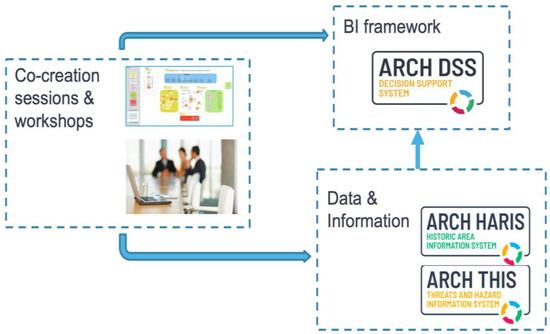 The aim of the ARCH DSS is to contribute to the sharing of knowledge about resilience of historic areas. An innovative aspect of the ARCH project has been the enactment of a co-creation-based methodology where different types of stakeholders for each city have actively contributed to the identification of decision objectives of interest for the city and of the risk indicators to be considered in the design of the DSS. On the other hand, the aim of the ARCH DSS for a city has been to target a wide audience when delivering the resilience assessment results, to strengthen the decision processes and increase the resilience capacity of the addressed community.