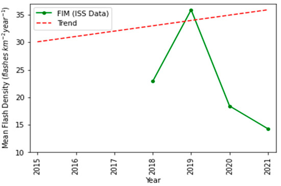 Lightning flash densities forecasted for FIM from 2015 to 2021.