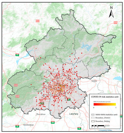 Beijing, the capital of China, is a typical international metropolis. Its high-density built environment and high-intensity population [7] movement expose it to the constant risk of various public health emergencies, e.g., the SARS outbreak in 2003 [8] and COVID-19 in 2020 (Xinfadi Market) [9]. This paper takes Beijing as an example. It explores the risk of COVID-19 infection in areas where Beijing has had outbreaks from a perspective of geographic and influencing factors. We also use machine learning techniques to measure the risk of outbreaks and identify vulnerable areas at the neighbourhood scale for each region in Beijing. It was our goal to comprehensively analyze the risk of COVID-19 outbreaks and the causes of such outbreaks in different areas of Beijing. It is expected that this study will provide technical support for future normalized epidemic prevention work in Beijing, as well as research paradigms for refined risk diagnosis in other regions.