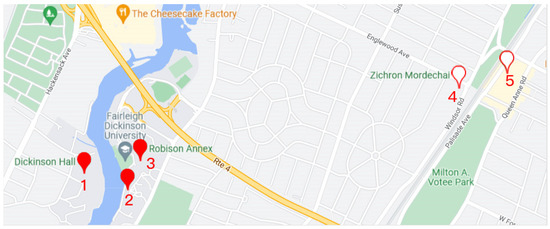 Examples of trajectories showing the relation between non-consecutive visits and non-adjacent locations, the markers 1 through 5 are the most frequently visited locations by a user.