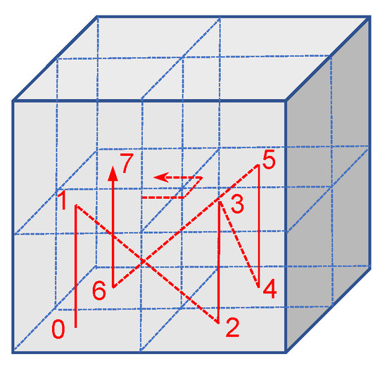 Each HGSTCode corresponds to a unique space–time cube, representing a specific space–time range. Moreover, any space–time cube can be further divided to obtain eight child space–time cubes, which corresponding HGSTCode order is shown in Figure 5.