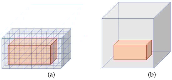 Space–time cubes covered by grid of different sizes. (a) Schematic diagram of a query at a high subdivision level. (b) Schematic diagram of a query at a low subdivision level.
