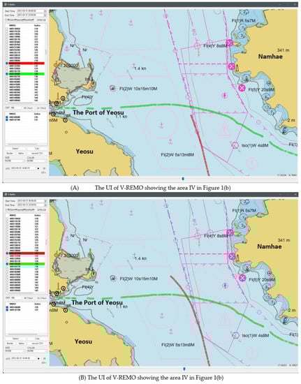 Finally, the interviewees provided multiple suggestions for visualizing results in V-REMO. For instance, symbols of vessels should be able to represent the speed and course of each vessel. Additionally, the size and color of the symbol showing the analysis results should be clearly distinguished from other symbols. In particular, users can confuse circular symbols with other symbols in the digital chart that are not appropriate to represent the speed and direction of navigation. More studies are necessary to symbolize vessels following IMO’s Guidelines for the Presentation of Navigation-Related Symbols [49]. The interviewees also proposed showing the navigation data on all vessels using a regular time unit. However, this suggestion does not apply to the V-REMO UI because periodic intervals of the transmission of navigation data can be an essential factor for marine transportation analysis.