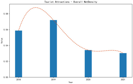 Irregular inverted ‘U’ trend in the overall network density variation of tourism flows.