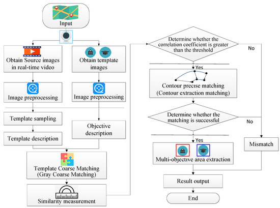 The flow of the image multi-target recognition and extraction algorithm based on template and contour matching in this study is shown in Figure 1.