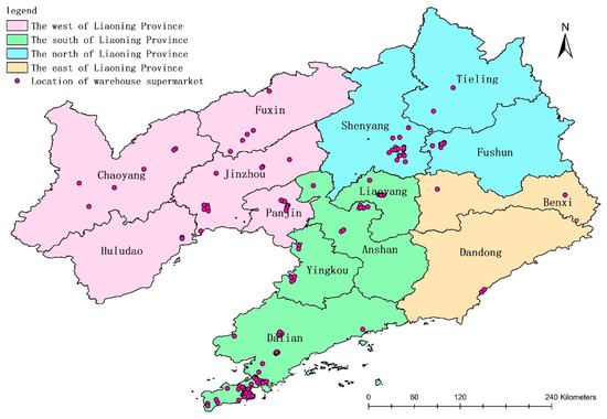 Location Distribution of Warehousing Supermarkets in Liaoning Province.