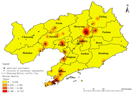 Number Distribution and Nuclear Density of Warehouse Supermarkets in Liaoning Province.