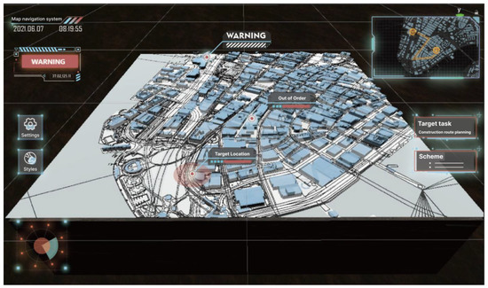 Map navigation systems are generally used to show items’ spatial distribution and activities’ deployment. It is frequently utilized in typical scenarios such as operational command [1], geological survey [2], catastrophe rescue [3], public safety emergency [4], etc. In recent years, the emphasis of research on this subject has switched from the 3D depiction of geographic information [5] to the integration of innovative display and interaction technologies [6,7]. Specifically, the natural interaction technology for the XR (a collective term for virtual reality, augmented reality, and mixed reality) environment allows for accurate three-dimensional information and adaptable natural interaction.