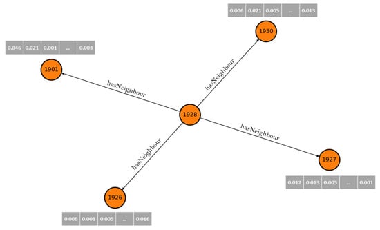 The textual description is represented in the form of an embedding, created, as in previous methods, with the use of sentence Transformers. The edges, on the other hand, describe the neighborhood relationships between the planning zones (see Figure 5). Thus, by writing the data in the form of a graph, it is possible to represent the full topology of the spatial objects.