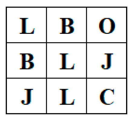 Step 1. Divide the copyright watermark data into several blocks, and then replace each block by a single value based on the correspondence shown in Table 1. The result is shown in Figure 4.