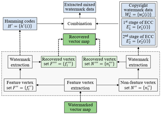 Diagram of watermark extraction and map content recovery.