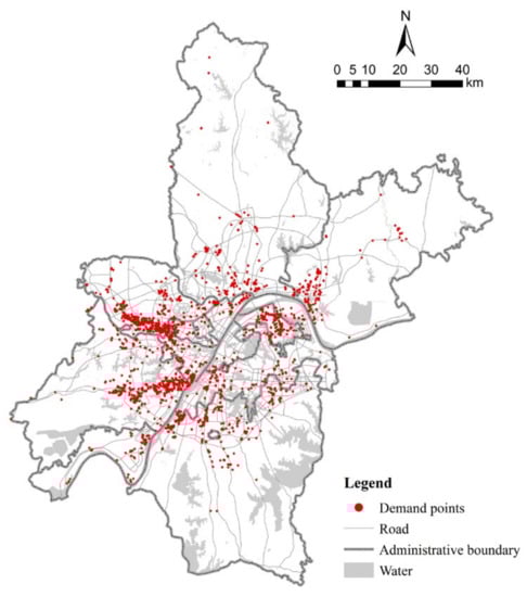 Figure 7. The distribution of the logistics demand points in Wuhan. - (2)