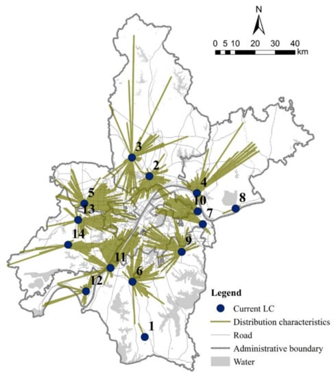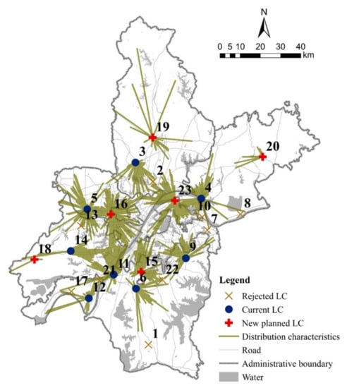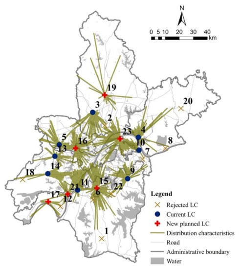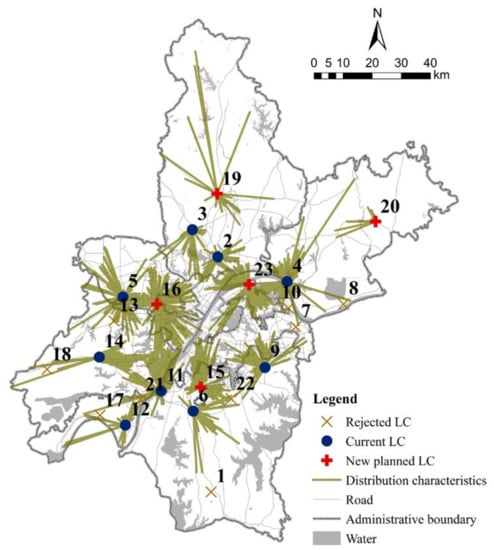 Logistics centres are usually located in the areas with high freight volumes, which is consistent with the result in our study as well. In practice, however, logistics centres vary in size and service level, and often the limited carrying capacity of some logistics centres in cities leads to a large concentration of trucks in the vicinity, thus reducing the service efficiency. It was found that the number, size, and quality of logistics facilities positively influence export flows [54].