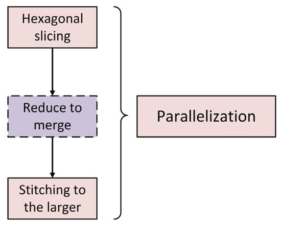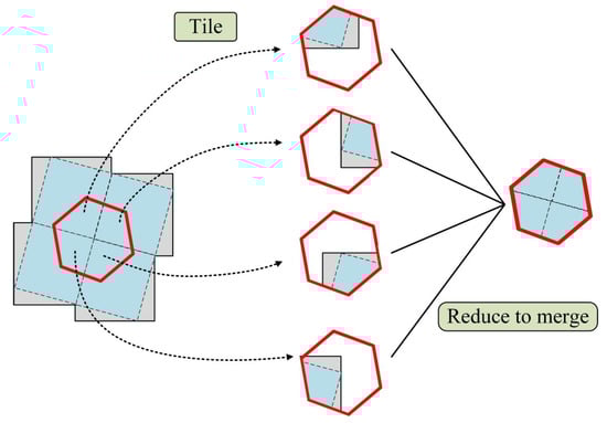 As shown in Figure 3, the merger of hexagonal tiles is relatively simple, mainly involving the merging of fragments located on the same tile into a complete hexagonal tile. This process merges tiles as a unit, making it ideal for parallelization.