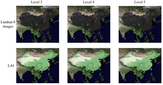 Figure 11 shows Landsat-8 and LAI images in multiple levels visualized with Cesium. The position of the hexagon tile in the map is consistent with the actual spatial position, which also verifies the reliability of the parallel slice. In addition, the multi-level hexagon tile also shows details at different scales.