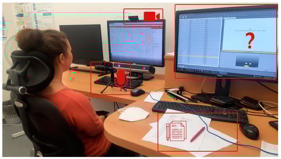 The experiment was conducted in a controlled and comfortable environment, specifically a soundproof room with a comfortable chair. The researcher interfered minimally, if at all, during the experiment to avoid impacting on the participants’ thought processes. To achieve this, the observer was seated at a suitable distance behind the participants. The testing room was equipped with a high-quality Trust GXT 232 microphone with a filter (with a 48 kHz sampling rate), and the researcher had note paper, a pencil, and the test scenario (as depicted in Figure 4).