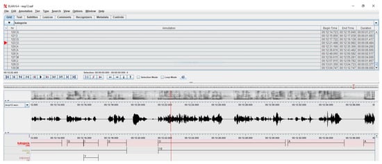 - Wittenburg, P.; Brugman, H.; Russel, A.; Klassmann, A.; Sloetjes, H. ELAN: A Professional Framework for Multimodality Research. In Proceedings of the 5th International Conference on Language Resources and Evaluation, Genoa, Italy, 24–26 May 2006. [Google Scholar]
