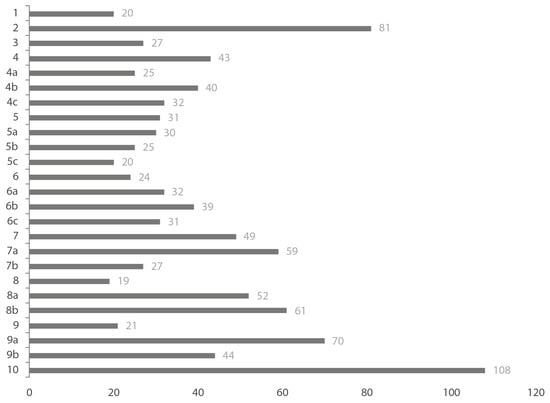 Based on the chosen scale, tasks 8b (development of the number of cars in the county, see Figure 3, #7), 9a, and 9b (questions related to public transport in the county, see Figure 3, #8) presented a high error rate. This was attributed to difficulties encountered by the participants in understanding and interpreting the infographic sections. The task of identifying the modes of transport to Ostrava airport also posed challenges as most participants were unable to accurately identify the various transportation lines. Despite the presence of a direct railway line to the airport, participants did not mention this option.