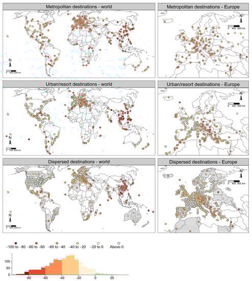 Temporal or more permanent reduction in some segments of metropolitan destinations could help them to alleviate the negative impacts of untamed tourism growth labelled recently as overtourism [91,92,93]. Therefore, tourism de-metropolisation, primarily via reducing short trips to the most popular urban destinations facilitated by cheap flights and short-term rentals, may redirect the evolution of urban tourism to a more sustainable path [25,94,95].