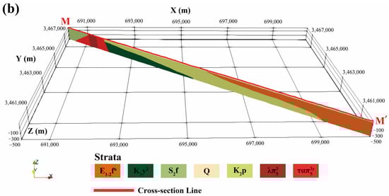 Through cycling steps (1)–(4), all the strata surfaces in set can be transformed into 3D strata to obtain the 3D set . Then, we can obtain the 3D GC by combining all the 3D strata surfaces. Figure 5b shows the 3D GC M-M’.