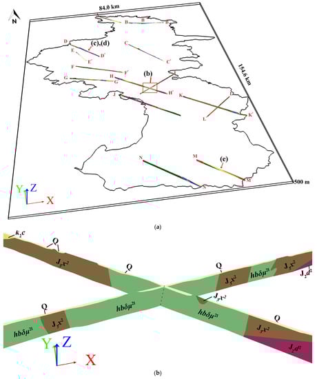 - Wu, X.; Liu, G.; Weng, Z.; Tian, Y.; Zhang, Z.; Li, Y.; Chen, G. Constructing 3D Geological Models Based on Large-Scale Geological Maps. Open Geosci. 2021, 13, 851–866. [Google Scholar] [CrossRef]