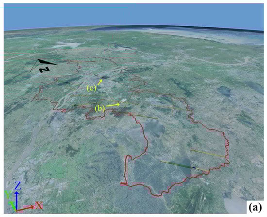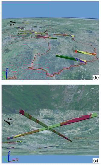 The fourteen GCs in the study area are processed by the proposed method in Section 3.1, Section 3.2, Section 3.3 and Section 3.4. The 3D transformed GCs are shown in Figure 7. Figure 7a is the global view, and Figure 7b–e is the local view.