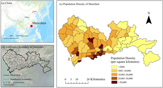 Population information of Shenzhen was retrieved from a commercial dataset provided by Merit Interactive Co., Ltd., which was collected on 1 June 2020, through the Software Development Kit (SDK) installed in residents’ mobile phones. This SDK dataset provides the population distribution in Shenzhen, with a spatial resolution of 150 m.