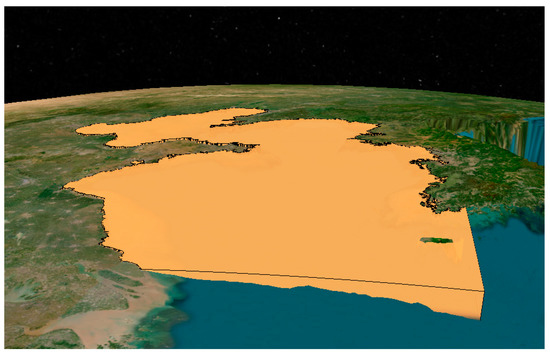 In this experiment, the sea temperature data of the Yellow Sea and the Bohai Sea in China were studied as the case. China’s Yellow Sea and the Bohai Sea are shallow, semi-closed coastal seas. The seabed topography of the study area is tilted from north, east and west to central and southeast [27]. The range of the sea temperature field in the study area decreases as the depth increases. The ray-casting calculation process was conducted in the GPU. The vertex coordinates of proxy geometry were introduced into the vertex shader and were bound with the digital virtual Earth by coordinate transformation, as shown in Figure 8.
