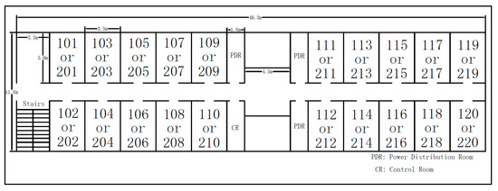 The simulated dormitory is the first floor of Yibei Building, Xuhui West Campus of Shanghai Normal University. The alarm system in the dormitory building uses a pre-recorded voice broadcast system. The geographical location is shown in Figure 3, and the layout of the dormitory is shown in Figure 4.
